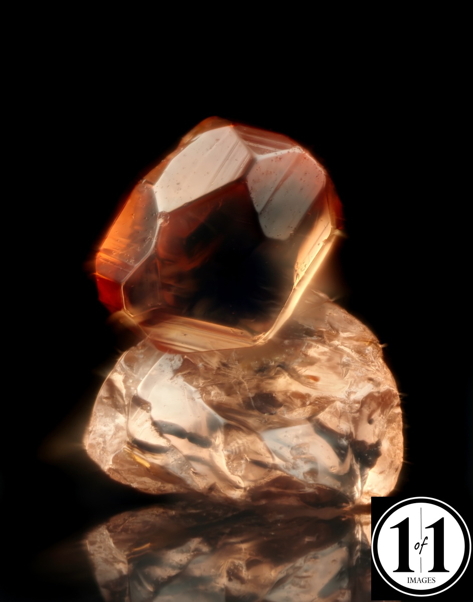 Here we have a tiny sand garnet - between 0.2mm and 0.3mm wide sitting balanced on another grain of sand.  Printed as a stunning 11"x14" print mounted in a 16"x20" double mat.  The mat will have a small window under the print where the actual sand grains are separately adhered to the mat!  Each 1of1 print will be printed ONE time ever!
