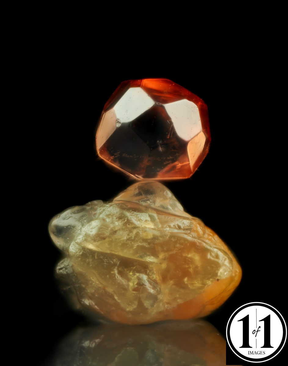 Here we have a tiny sand garnet - between 0.2mm and 0.3mm wide sitting balanced on another grain of sand.  Printed as a stunning 11"x14" print mounted in a 16"x20" double mat.  The mat will have a small window under the print where the actual sand grains are separately adhered to the mat!  Each 1of1 print will be printed ONE time ever!